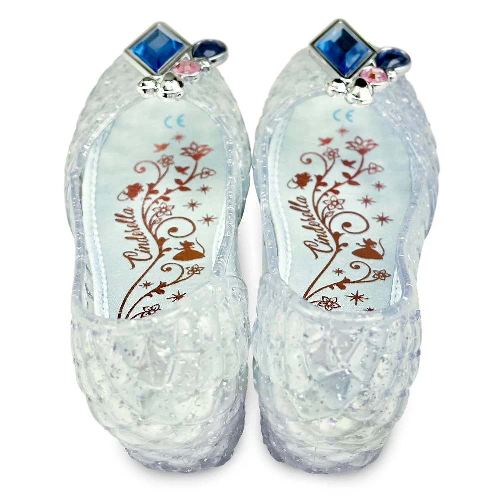 - Blue satin footbed with metallic Cinderella ”signature”