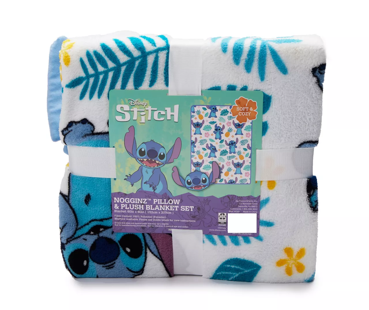 Add a touch of decorative enchantment to your little one’s room or their next travel adventure with this fashionable and supersoft Nogginz pillow and blanket set. The fun and colorful design features your fan’s favorite Disney alien from Lilo & Stitch, and is crafted from cozy fabric for warmth and comfort. The matching pillow makes for a comfy place to rest your head.