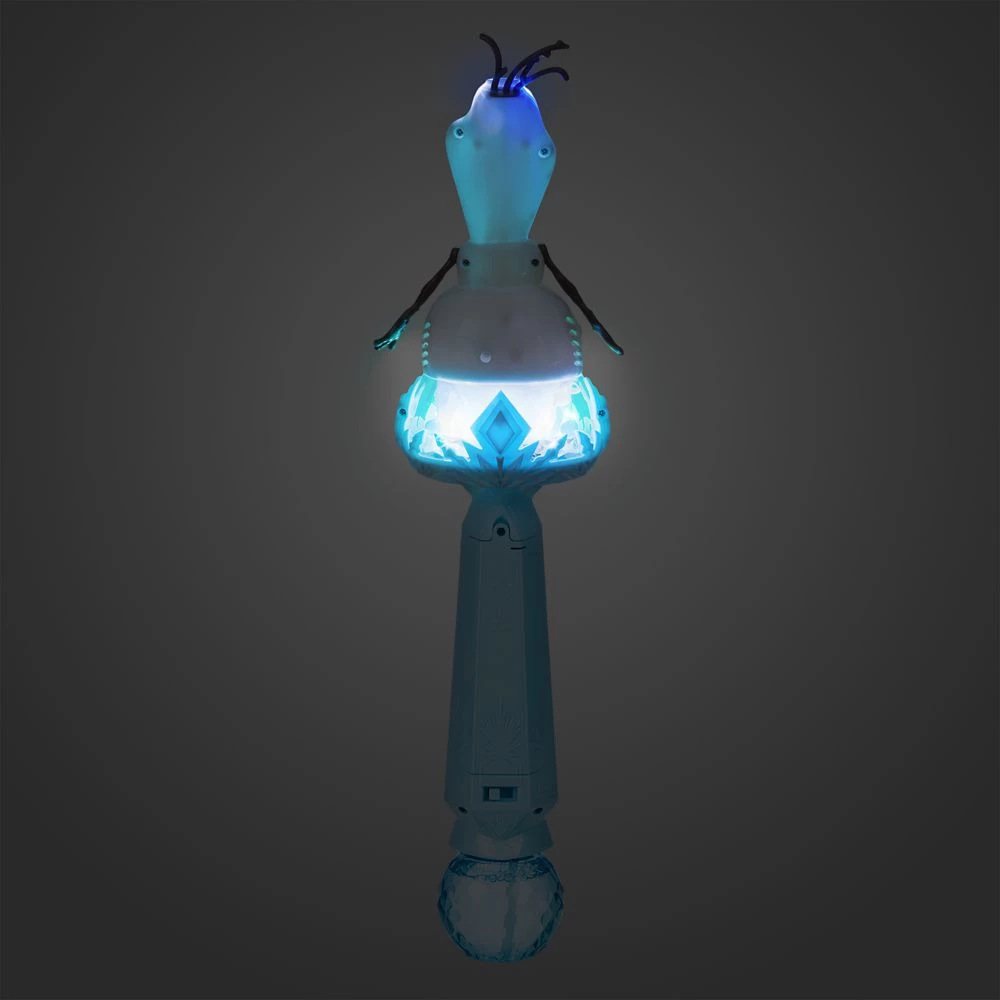 Our Olaf musical light-up snow wand will melt the hearts of fans of the beloved snowman from Disney’s Frozen. Olaf is perched atop the icy blue design that glows while sending a stream of ”snow” into the air as he sings In Summer from the movie. Sure to prompt smiles as big as the one on Olaf’s face, you’ll never want to let it go.
