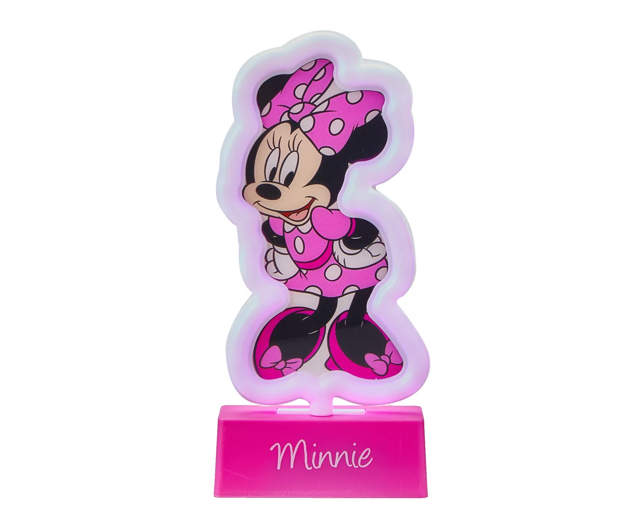 Filled with colorful LED lights arranged to look like a neon glow, this lovely table lamp brings bright illumination and fun Disney style to any bedroom or play room it graces. This cute Minnie Mouse lamp is battery-operated so you can easily place and arrange as you please.