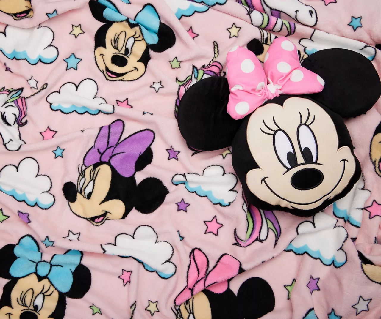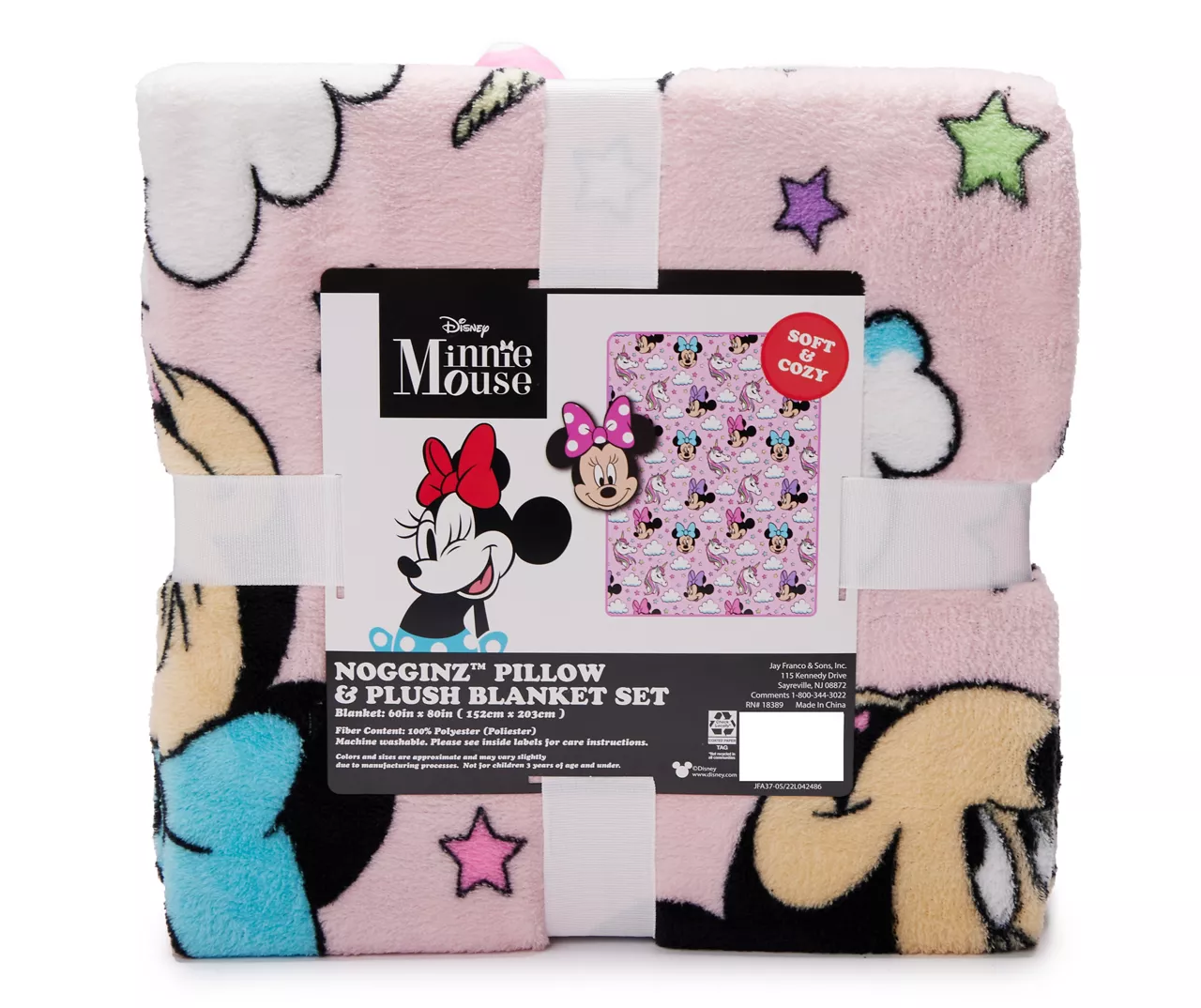 Add a touch of decorative enchantment to your little one’s room or their next travel adventure with this fashionable and supersoft Nogginz pillow and blanket set. The fun and colorful design features your fan’s favorite Disney icon Minnie Mouse, and is crafted from cozy fleece fabric for warmth and comfort. The matching pillow makes for a comfy place to rest your head.