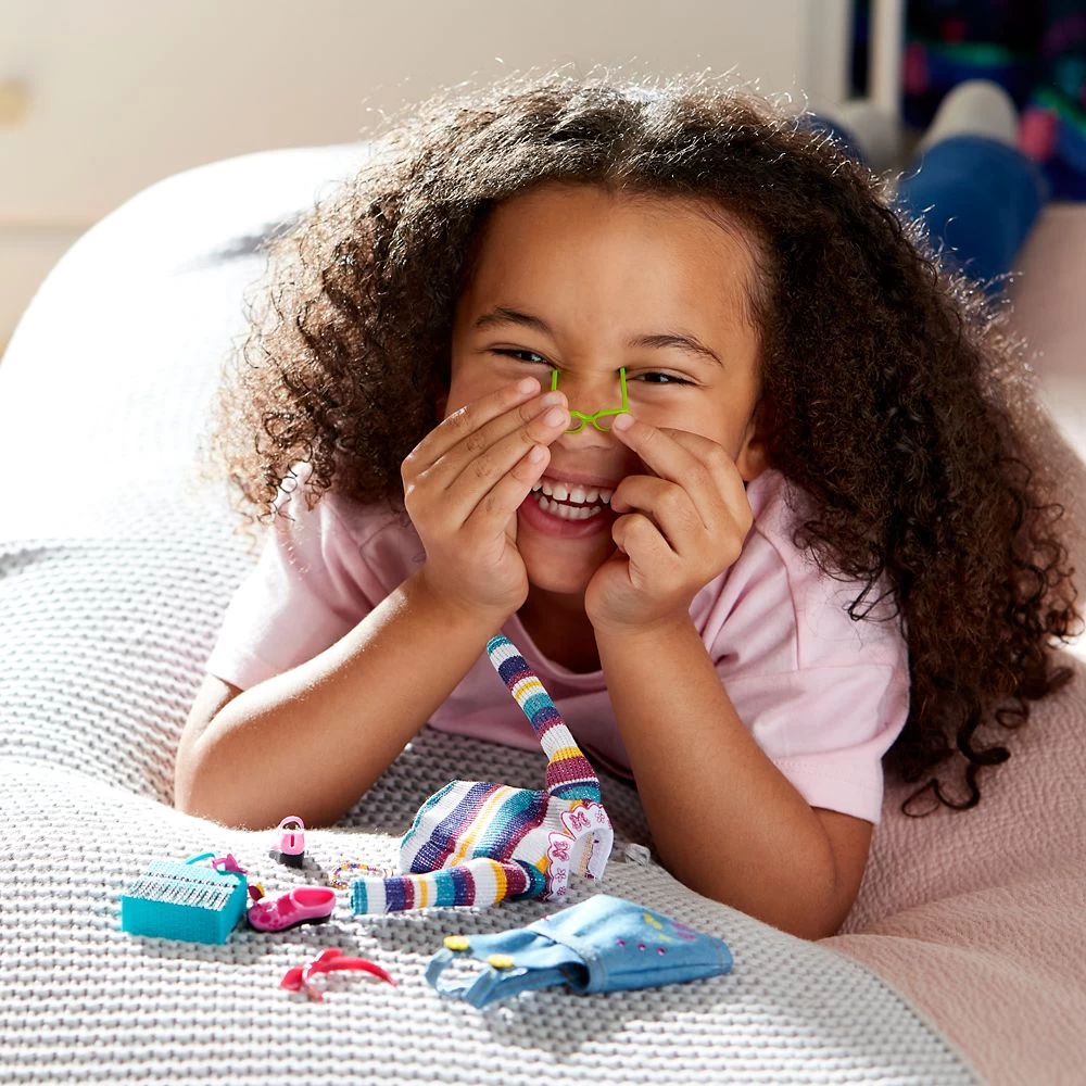 A perfect gift for your special little dreamer, this Disney ily 4EVER doll fashion pack inspired by Encanto includes a colorful outfit modeled after their favorite Madrigal. The eight-piece set includes a sweater, overall dress, necklace, tote, shoes, headband and glasses like the pair Mirabel wears. Pretty little details like butterflies, rainbows and flowers make this outfit simply enchanting.
